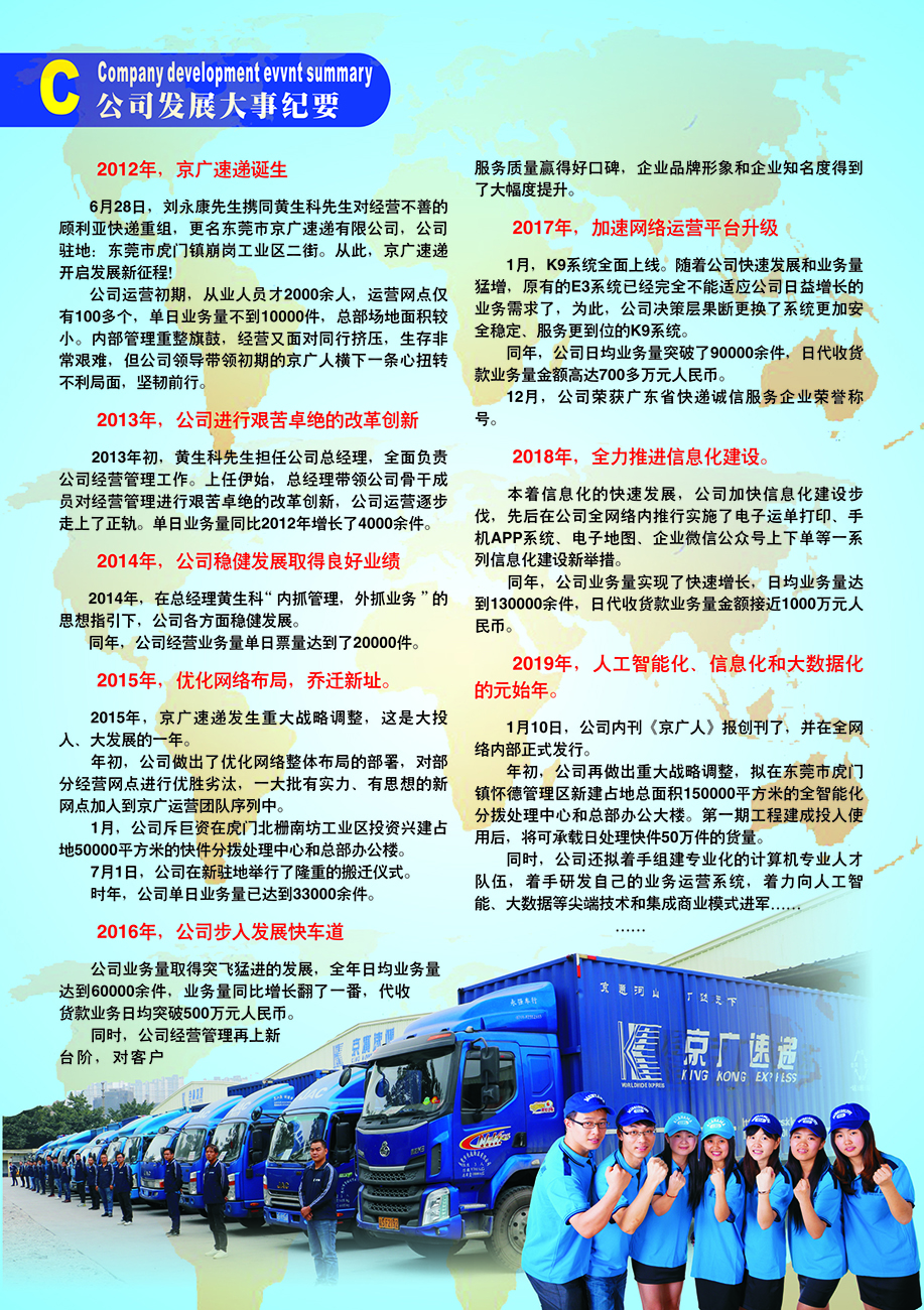 同年,公司經(jīng)營(yíng)業(yè)務(wù)量單日票量達(dá)到了20000件。